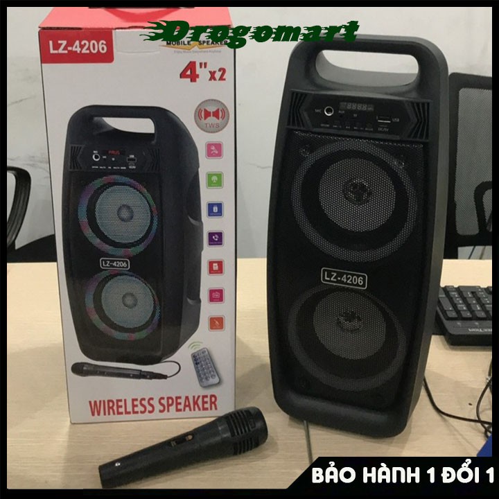 Loa hát karaoke bluetooth di động LZ4206 công suất lớn 2 loa và có bass - Tặng kèm Micro