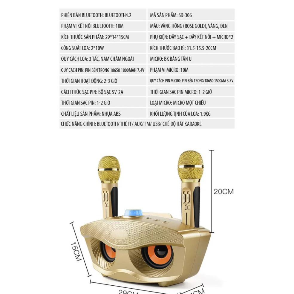 Loa Karaoke Bluetooth Mini SD-306 Loa Hát Karaoke Đa Năng,Tặng Kèm 2 Mic Không Dây🎄 GIỚI THIỆU SẢN PHẨM: