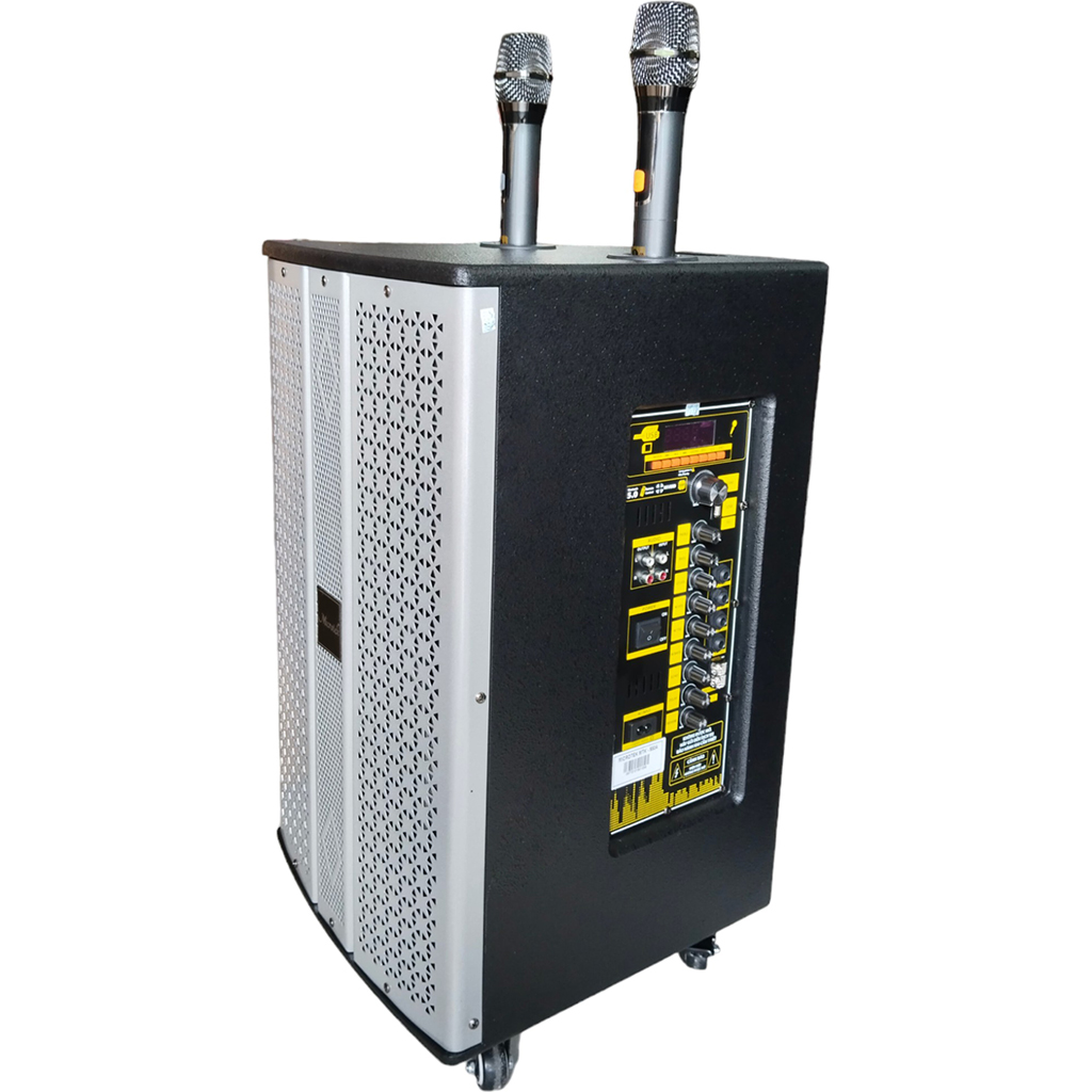 Thiết kế hiện đại với tông màu đen xám sang trọng Công suất 550W đem đến chất lượng âm thanh vượt trội Kết nối Bluetooth 5.0 giúp kết nối không dây tiện lợi 2 Micro kim loại không dây cao cấp đổi được tần số Trang bị bánh xe giúp di chuyển nhẹ nhàng, dễ dàng