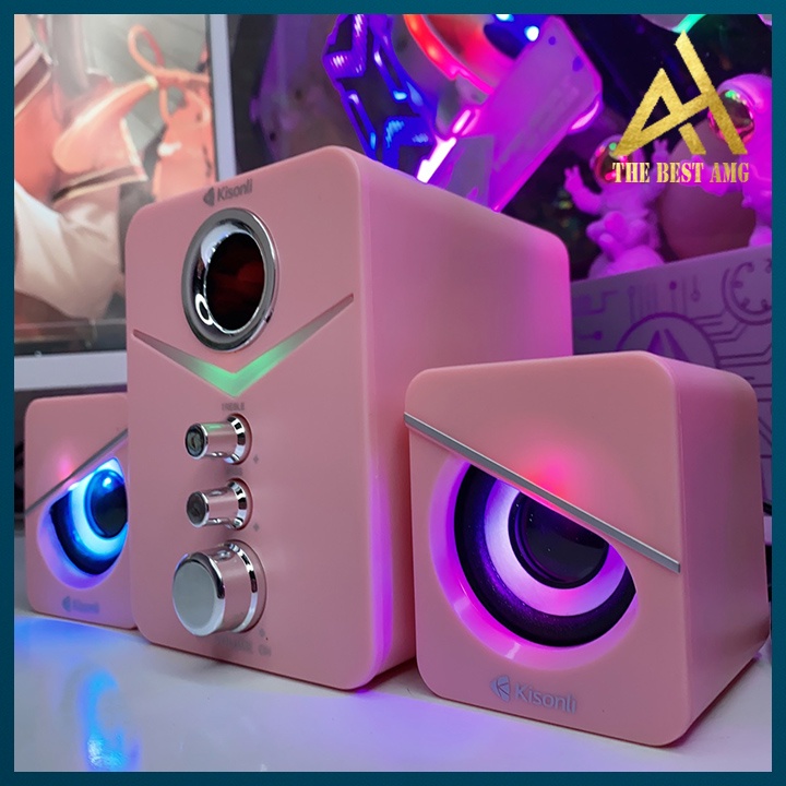 Loa Máy Tính Để Bàn Có Dây LED RGB 2.1 Kisonli U-3100 Màu Hồng Dễ Thương Loa Vi Tính Nghe Nhạc Laptop Pc✔️ THE BEST AMG CAM KẾT HÀNG CAO CẤP 100%