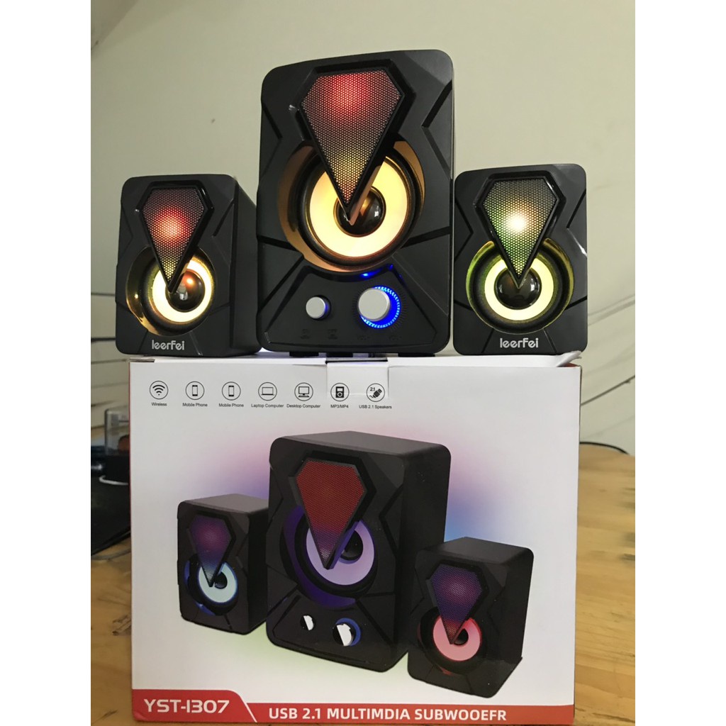 // Loa vi tính có led đổi màu cắm nguồn USB YST-1307 để bàn cao cấp âm thanh siêu hay, led 7 màu nháy theo nhạc