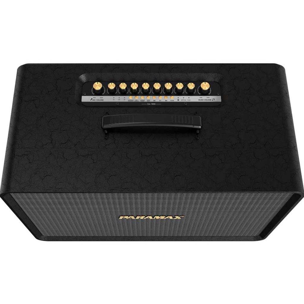 Âm thanh Ambisonic bao phủ đều 360° toàn không gian Hệ thống 4 loa: 2 tweeter 2.54cm + 2 woofer 20.3cm công suất cao Tweeter Titanium họng kèn nén dùng tốt cả trong nhà lẫn ngoài trời Woofer motor lớn voice coil lớn hoạt động tuyến tính ở mức cao Loa Paramax tích hợp 2 micro không dây ca hát mượt mà ổn định DSP kép 32-bit xử lý nhanh cho âm thanh và giọng hát tự nhiên Mạch khuếch đại Class-D Texas Instruments cho tiếng tròn rõ Căn chỉnh Echo Reverb chống hú tăng bass ngay trên bảng điều khiển Kết nối đa dạng: Bluetooth 5.3 USB HDMI ARC Optical AUX OTG