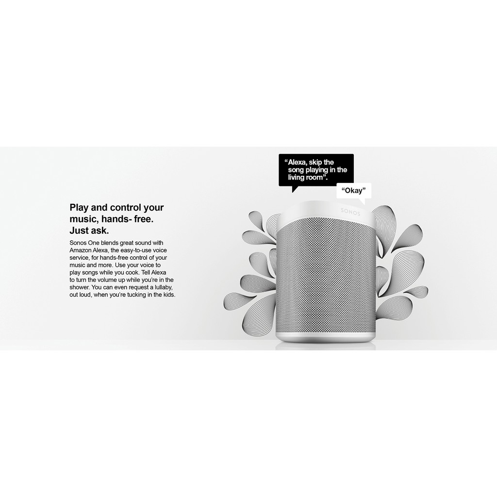 Phát bài hát, kiểm tra tin tức , quản lý thiết bị thông minh và trải nghiệmAlexa, nhiều kỹ năng hữu ích bằng một loa Sonos one gen 2 .