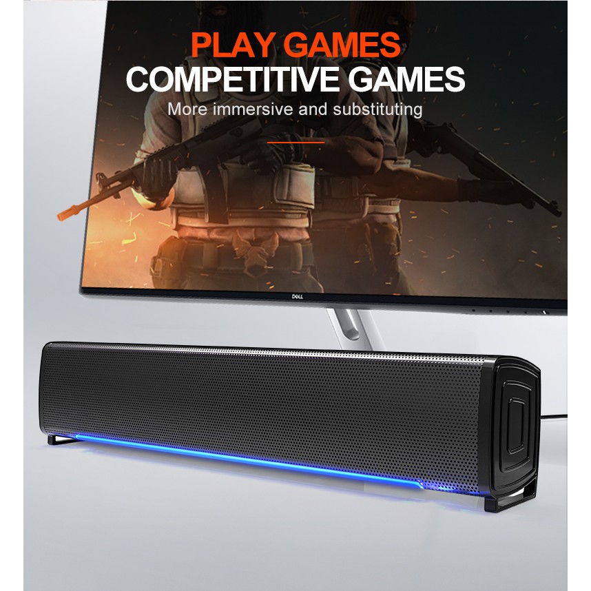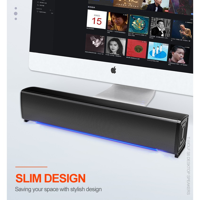 Loa Soundbar S6 T-WOLF vi tính, Có Dải Đèn Led Cảm Theo Nhạc Cao Cấp – Loa Máy Tính Siêu Trầm T-WOLF S6 PRO LED