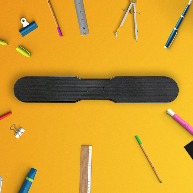 Thiết kế dải loa hình chữ nhật tạo cảm giác sang trọng lịch lãm cho sản phẩm, cầm vô rất chắc tay, màu đen trầm sang trọng không tì vết, không hề có cảm giác nhựa thường như một số sản phẩm trên thị trường đâu ạ.