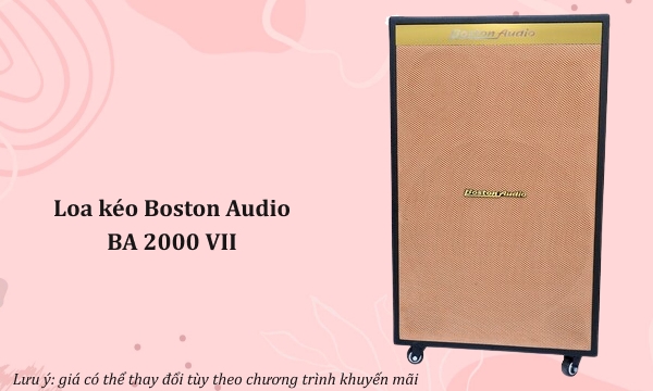 BA 2000 VII gồm 01 Bass 15 inch, 01 Middle và 01 Treble Loa thùng Boston Audio có kiểu dáng sang trọng, hiện đại Công suất lớn lên đến 1000W, cho âm thanh chất lượng cao Trang bị 02 cây micro UHF cao cấp, chống hú, chống rớt Cho phép kết nối đa dạng qua Bluetooth, USB, SD Card Khả năng di chuyển linh hoạt nhờ trang bị bánh xe tiện lợi