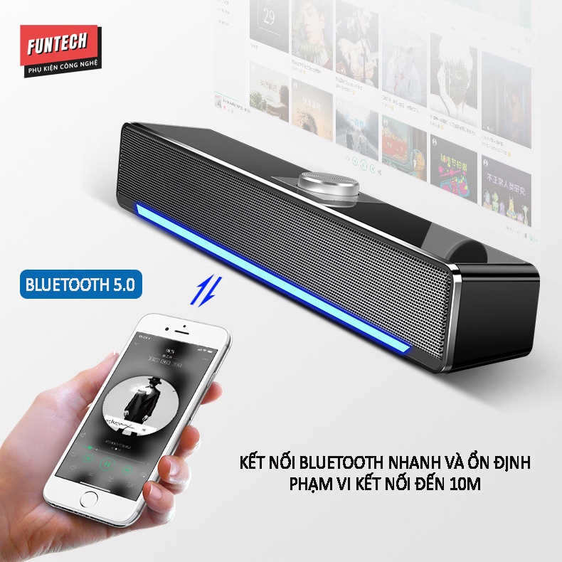 Loa vi tính Bluetooth MAICONG được thiết kế dạng thanh nằm ngang với màu sắc và kiểu dáng hiện đại. Loa có nhiều chế độ như nghe nhạc từ các thiết bị lưu trữ thẻ nhớ, usb, AUX đài FM, kết nối không dây với TV, Laptop, điện thoại...