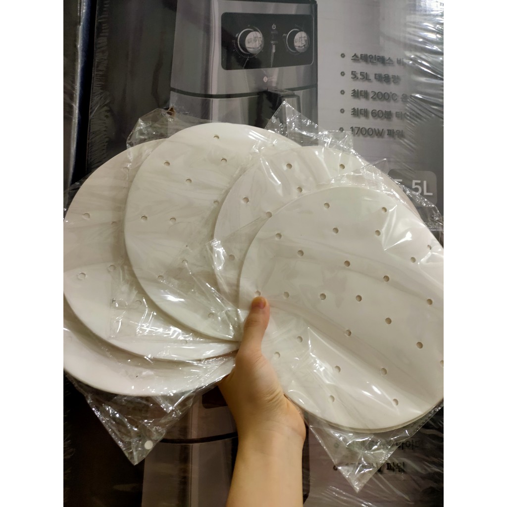 Giới thiệu [LOẠI TỐT] 100 Giấy Nến Đục Lỗ Thấm Dầu Cho Nồi Chiên Không Dầu 4-7Lit, Giấy nến chống dính hàng cao cấp