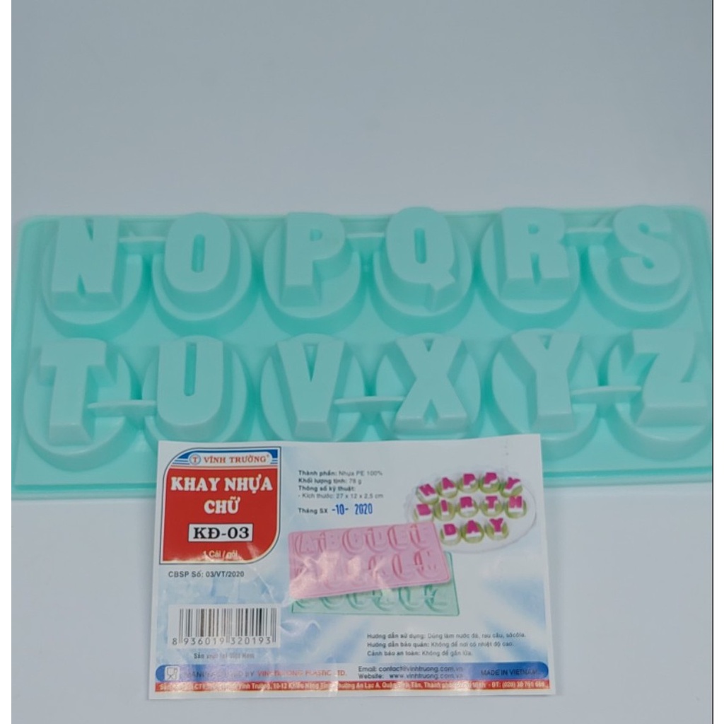 Khay đá Hình số và chữ Dk 03 - Dk03- 2 VT - Vĩnh Trường là sản phẩm khay đá sạch là được làm từ nhựa PE cao cấp, giúp bạn có thể làm đá viên, làm thạch, đổ socola nhanh chóng, tiện lợi. Đặc điểm nổi bật của sản phẩm