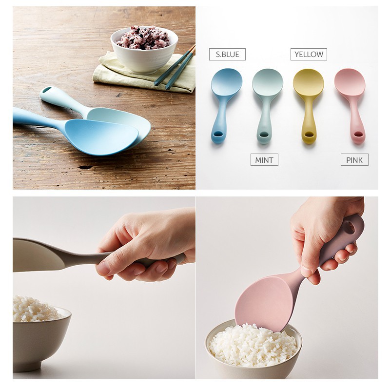 - Thiết kế nhỏ gọn , nhiều màu và tiện dụng . Sở hữu thiết kế nhỏ gọn với tay cầm vừa vặn và có khả năng chống trơn hiệu quả, phần lòng muôi có độ khum vừa phải giúp việc lấy cơm dễ dàng.