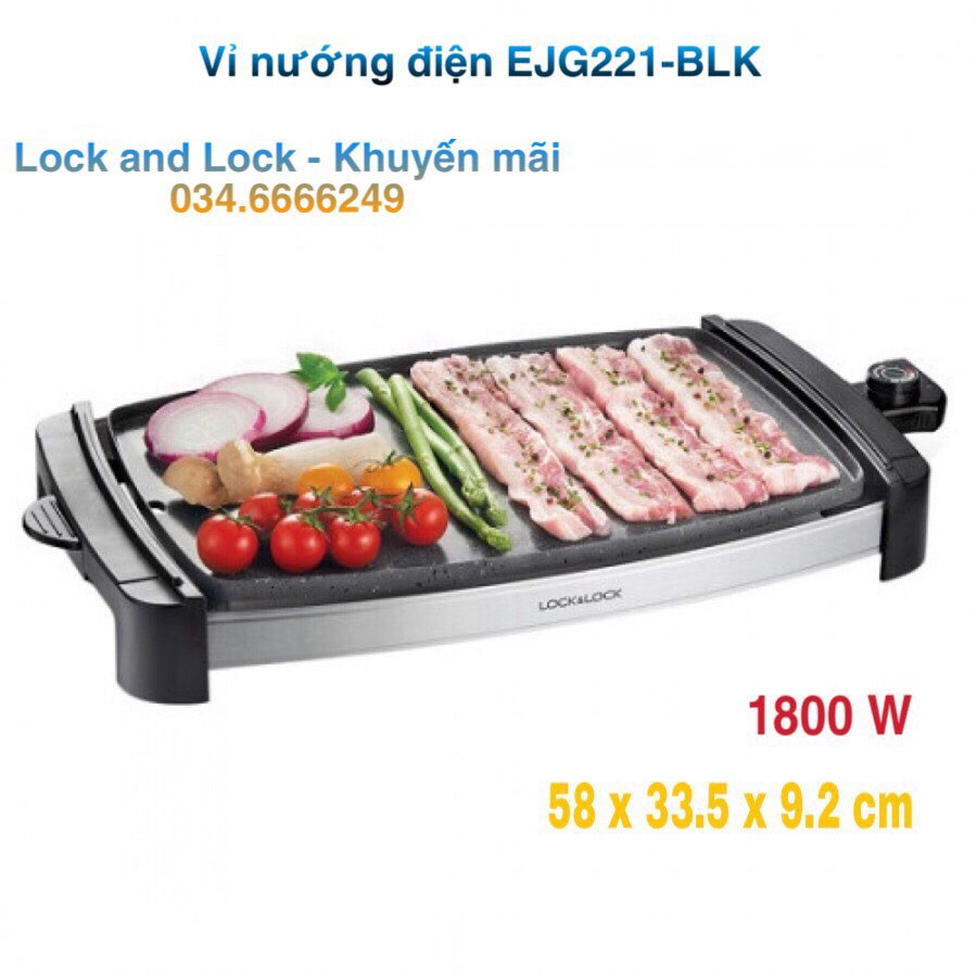 Nhà cửa & Đời sống > Dụng cụ nhà bếp > Lò nướng & phụ kiện || [LOCK&LOCK]VỈ NƯỚNG ĐIỆN PHỦ ĐÁ HOA CƯƠNG-EJG211BLK (1800W)Còn hàng