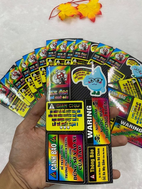 Sét tem logo cảnh báo 10x18 nhiều màu. Tem bao gồm tất cả các tem trong 1 sét. Tem thú vị vui vẻ dí dỏm dán chỗ mình thích cho đẹpTem 3 lớp không phai màu, không thấm nước.