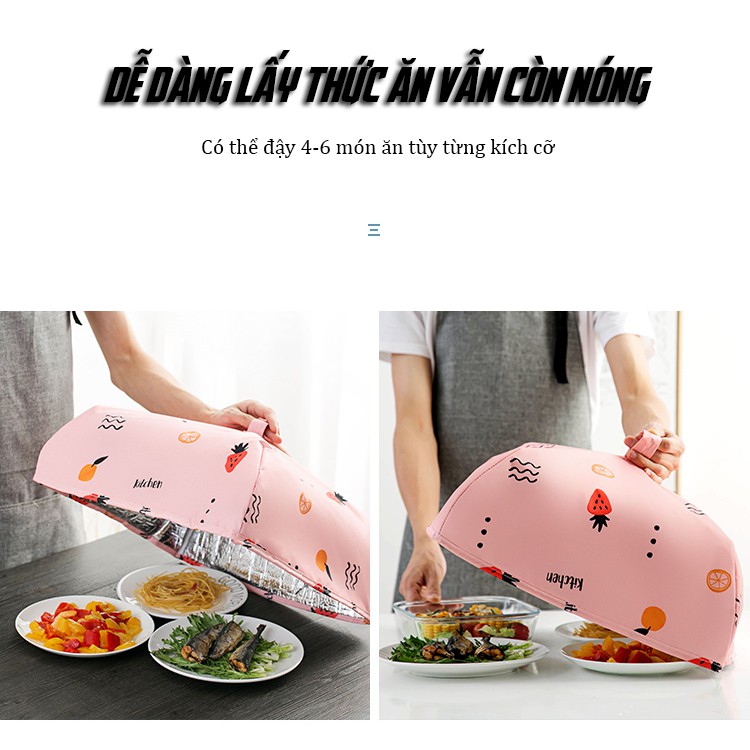 Lồng bàn vừa có thể đậy thức ăn vừa có lớp giữ nhiệt giúp cho thức ăn luôn nóng khi để trên bàn.Gấp gọn dễ dàng, tiết kiệm diện tích cho căn bếp của bạn.