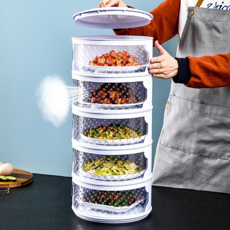 Nhà cửa & Đời sống > Bộ đồ bàn ăn > Lồng bàn || Lồng bàn nhiều tầng giữ nhiệt 5 gấp gọn thông minh đậy thức ăn mini đa năng nhựa trong suốtCòn hàng