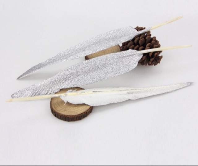 ☘️Lông vũ tự nhiên phủ nhũ kim tuyến mặt trước lông vũ. Có khoảng 20 màu nhưng ở đây shop chỉ đăng 2 màu vàng và bạc. nếu b nào cần màu khác thì để lại lưu ý khi đặt hàng hoặc chat với shop nhé.☘️Lông dài 15-25cm
