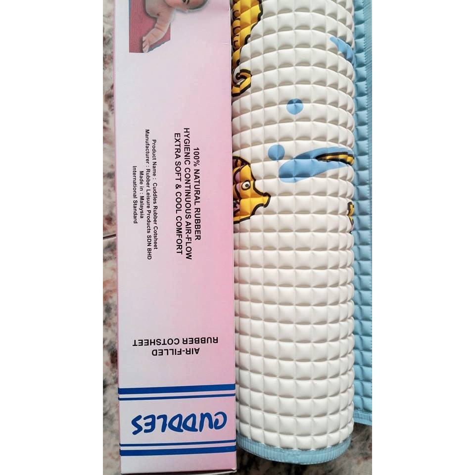 Da trẻ sơ sinh rất mỏng và nhạy cảm nên luôn cần đến sự chăm sóc tinh tế nhất. Tấm lót Cuddles là một trong những sản phẩm giúp chăm sóc bé từ những ngày đầu tiên đón bé chào đời. Thiết kế tiện dụng, có thể dùng trải trong các nôi, giường, cũi cho bé hay khi di du lịch, dẫn bé ra ngoài chơi hoặc dùng trải thành tấm lót lên giường chiếu nơi thay tã cho bé hoặc nơi bé chơi để ngăn không cho nước tiểu của bé thấm ra ga giường. Tấm lót Cuddles cũng có thể dùng trải trực tiếp trên sàn nhà.Sản phẩm được làm từ 100% cao su tự nhiên và được thiết kế với hơn 4000 túi khí giúp bé cảm thấy dễ chịu và Đặc Biệt rất thoáng mát cho béThông Tin Sản Phẩm