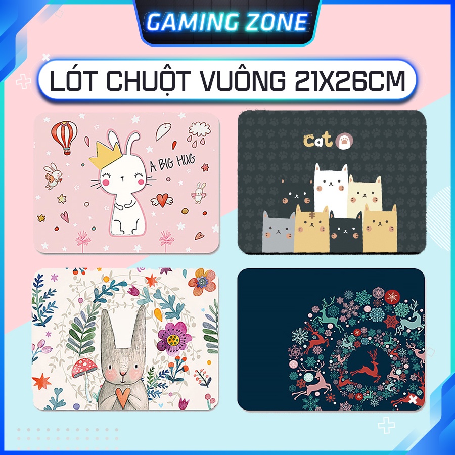 Lót chuột, bàn di chuột vuông 21cm x 26cm dễ thương chống trượt siêu bền siêu đẹp