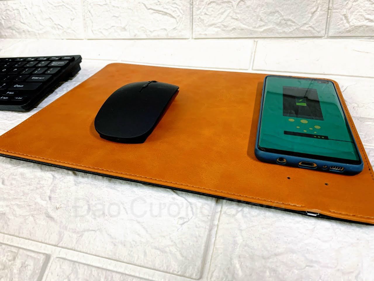 Giới thiệu Lót chuột da kiêm sạc không dây điện thoại - phong cách Retro Leather tấm thảm di chuột êm ái sang xịn chất lượng cao