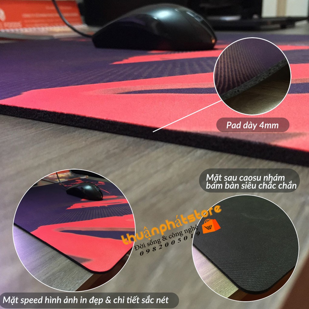 Lót chuột cao cấp dành cho game thủ và thi đấu thể thao điện tử chuyên nghiệp. Kích thước cực rộng cực dày giúp cho những pha vảy tâm từ trước ra sau không cần phải nhấc chuột lên khỏi pad.