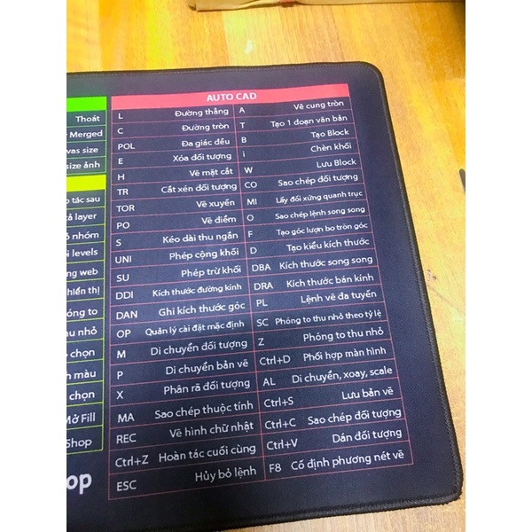 Giới thiệu Lót chuột in phim tắt Excel, MS-Office, Photoshop, Autocad, Pad MOUSE , Các Phím Tắt Chuột Pad