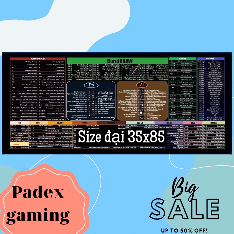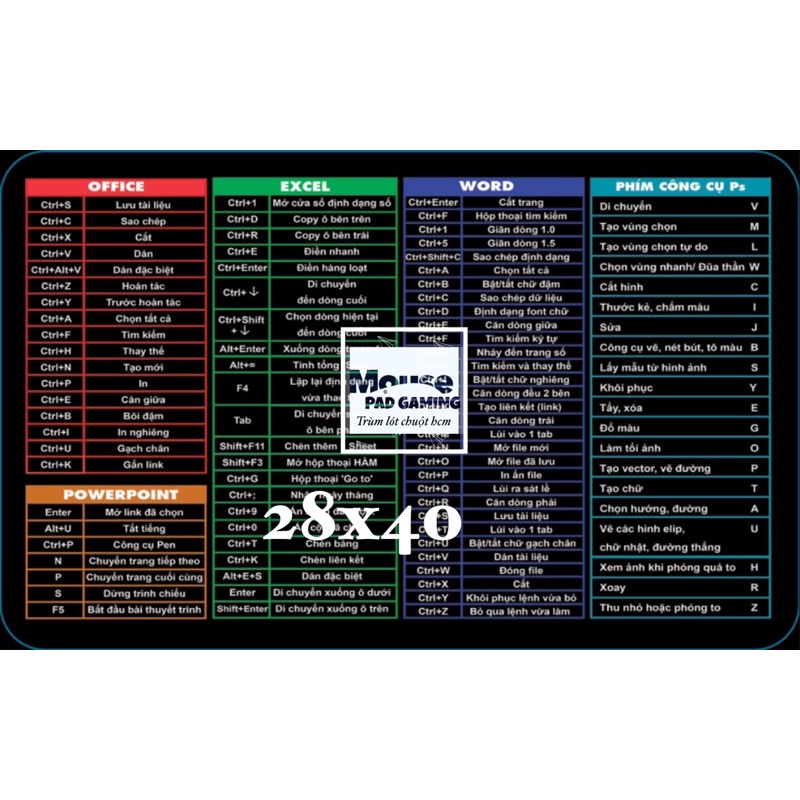 Máy tính & Laptop > Phụ Kiện Máy Tính > Bàn Di Chuột || lót chuột phím tắt văn phòng thiết kế office window Ai Ps bản tiếng việt đủ sizeCòn hàng