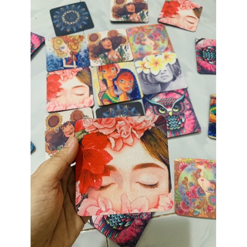 Lót ly để bàn tấm lót cốc trang trí decor hình in cao cấp combo 5 cái
