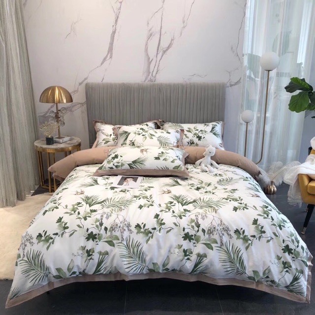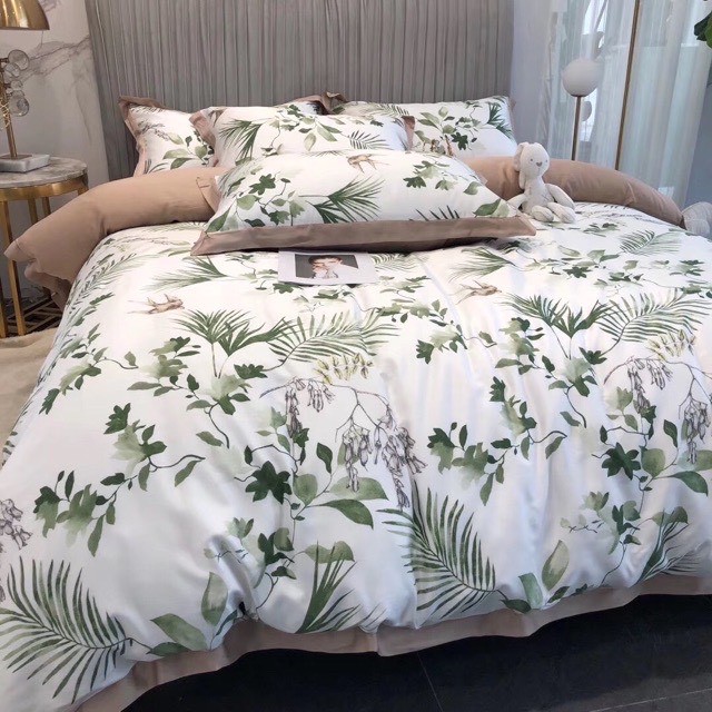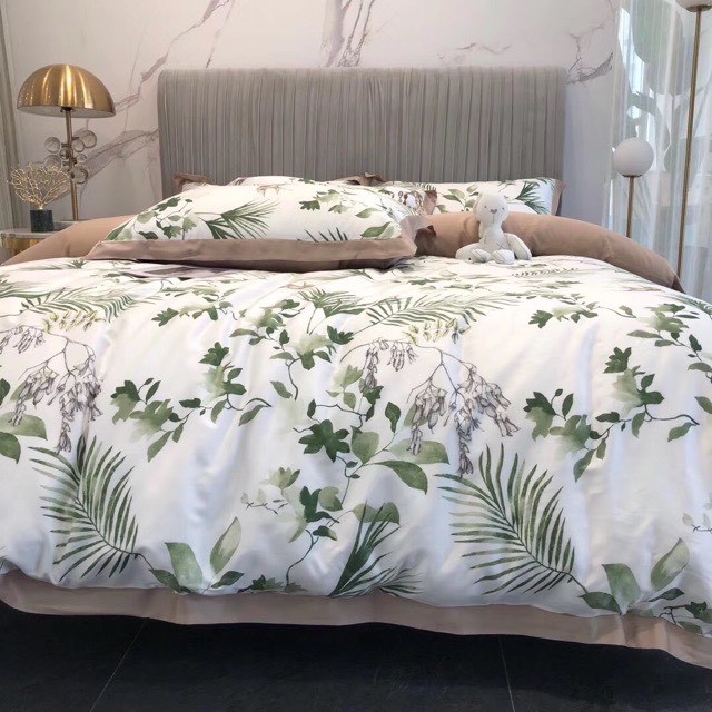 - 1 ga trải giường màu giống mặt trong của vỏ chăn freesize, (báo shop kích thước đệm nhà mình để shop may cho vừa vặn nha )