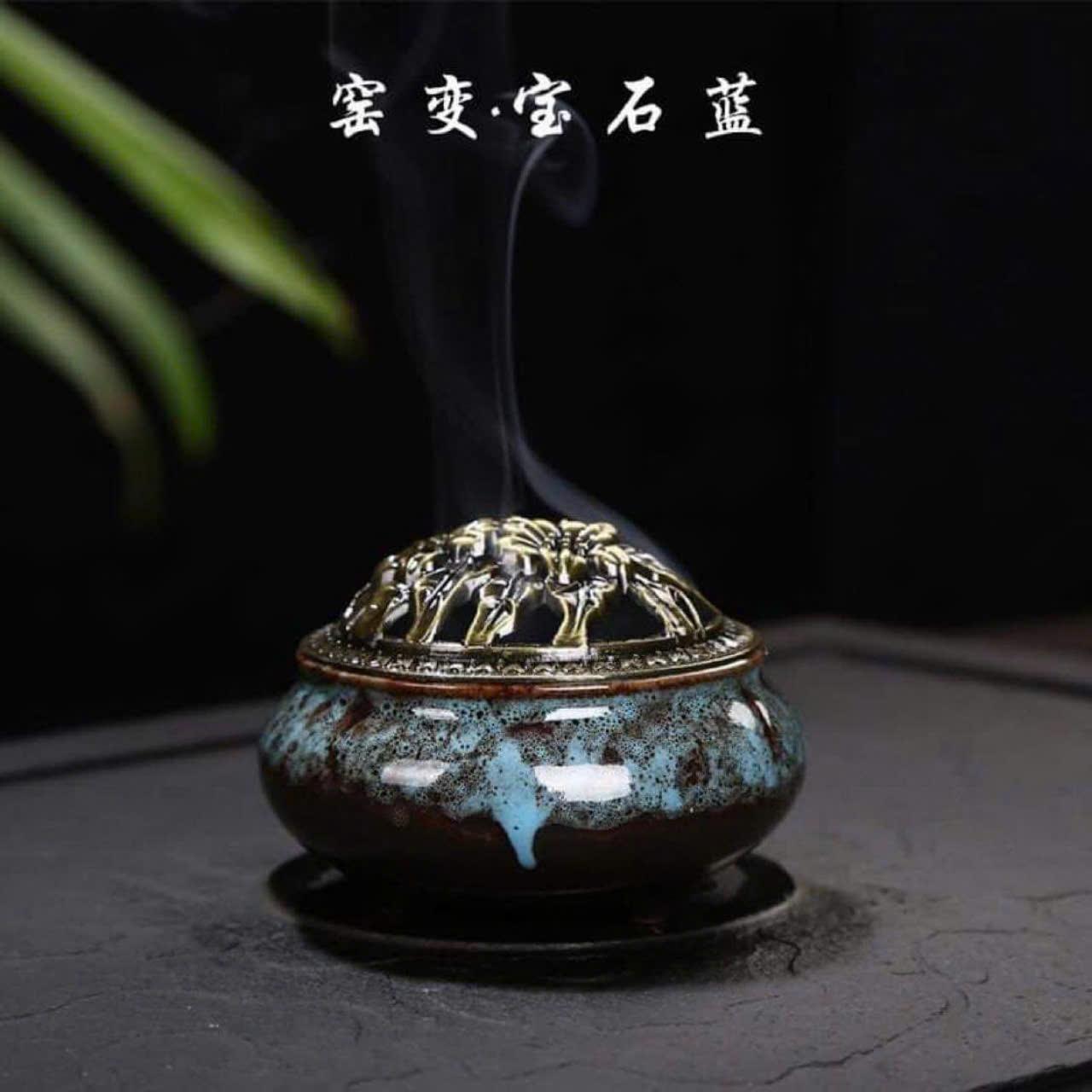 - 1 Lư gốm sứ tráng men cao cấp nắp thiếc