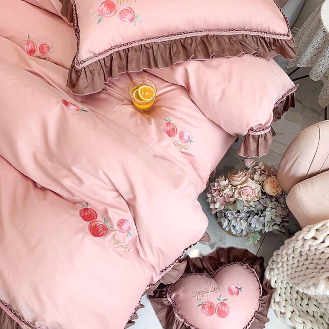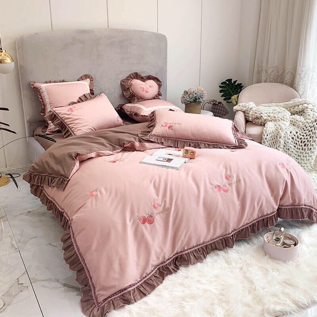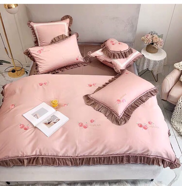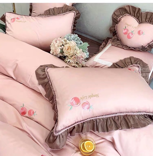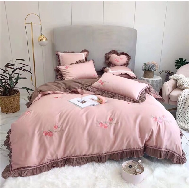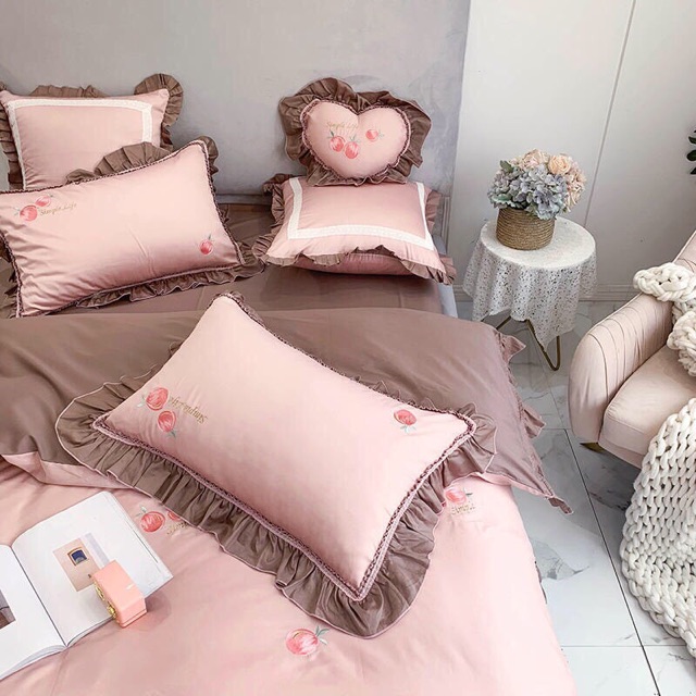 Nhà cửa & Đời sống > Nội thất > Đệm ngồi || Bộ lụa cao cấp 60s gồm 6 món màu hồng phấn có gối timCòn hàng