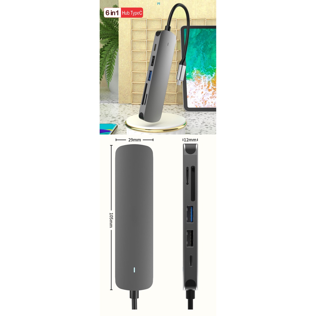 ⚡ Hub 6 trong 1: Cổng TypeC 60W vừa sạc nhanh 3.0 vừa truyền dữ liệu typec 2.0; USB 2.0, USB 3.0; Đọc Thẻ nhớ TF/SD; HDMI 4K