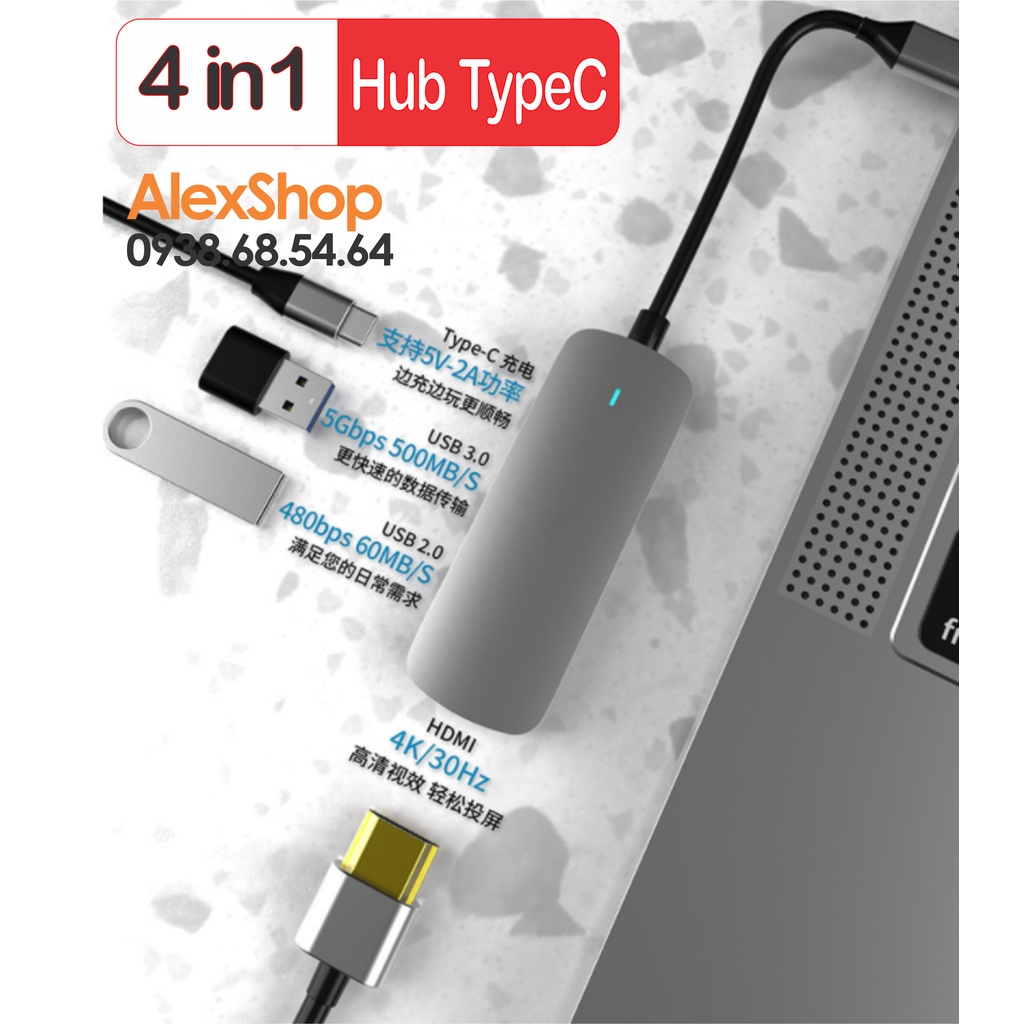 ⚡ Hub 4 trong 1: Sạc Typec 5v-2A; USB 3.0 5Gh; USB 2.0, HDMI 4K