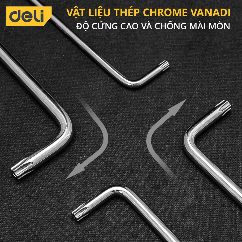 Bộ Lục Giác 9 Cây Đầu Hoa Thị Chữ L T10-T50 Deli Chính Hãng - Chất Liệu Thép Siểu Bền - Chuyên Dụng Sửa Chữa - DL3091