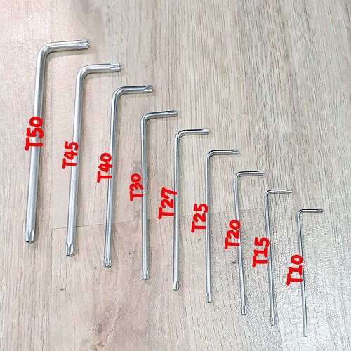Bộ bao gồm 9 món với các kích thước khác nhau: T10, T15, T20, T25, T27, T30, T40, T45, T50 phù hợp với từng bulong, ốc vít. Giúp bạn có thể linh hoạt hơn trong công việc.