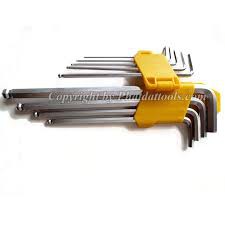 Bộ lục giác đầu bi gồm 9 cây dùng để tháo lắp, sửa chữa các vật dụng trong gia đình- Bộ lục giác bi 9 cây hệ mét đầu bi chuyên được sử dụng rộng rãi trong việc tháo, lắp ghép bulong đai ốc