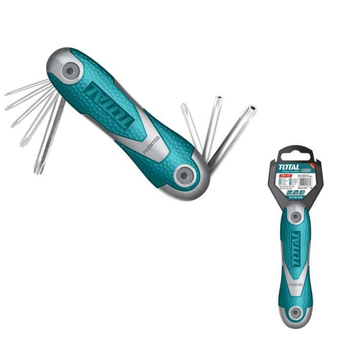 Bộ 8 Lục Giác Xếp Đầu Sao Đầu Bông Torx Key TOTAL THT1061846- Bộ lục giác sao loại gập Total THT1061846 được chế tạo từ chất liệu có hàm lượng Cacbon cao nên cứng cáp, chịu được lực cao, không dễ gãy hay hư hỏng như sản phẩm thông thường khác, bền theo thời gian.