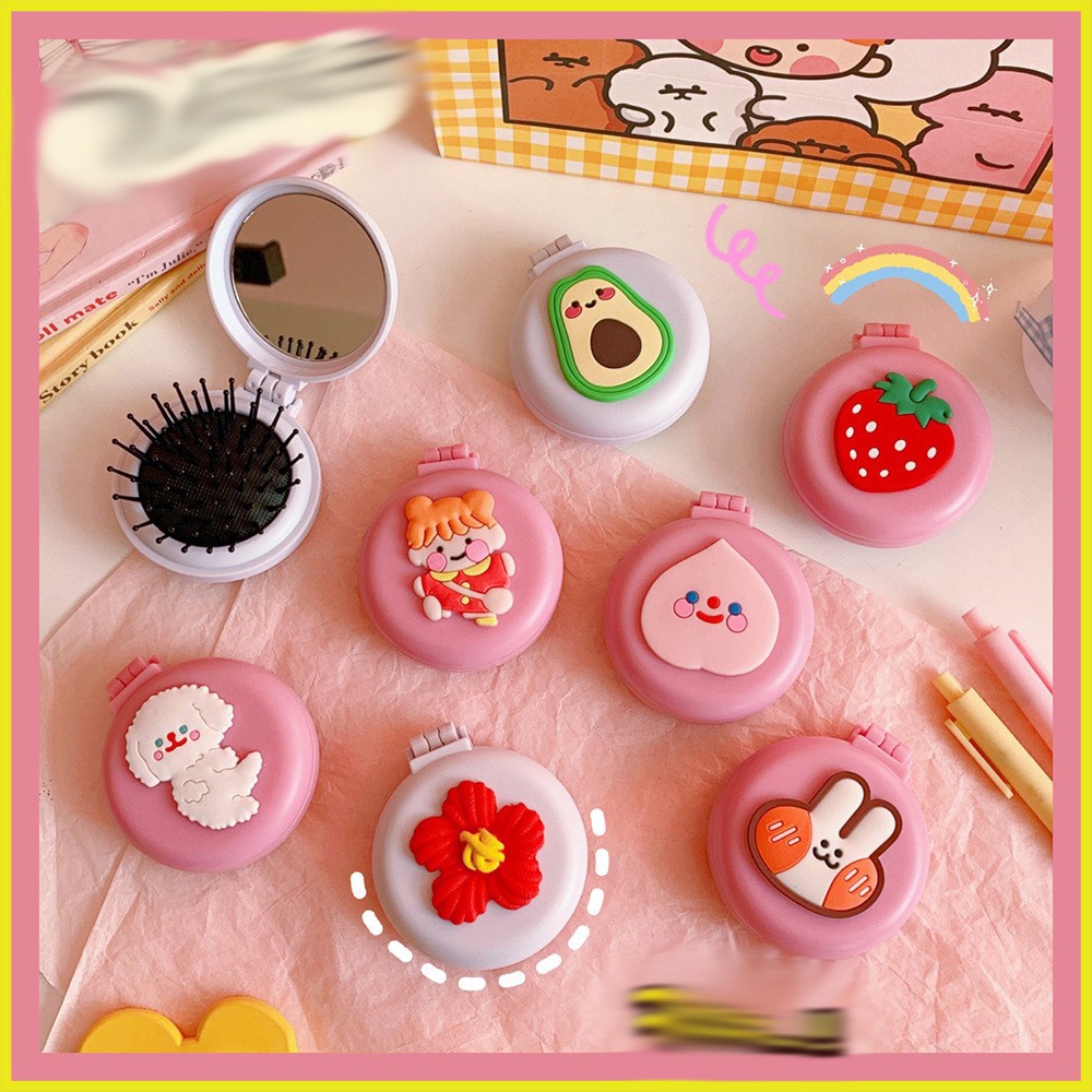 Gương trang điểm shopi tích hợp lược có thể gập gọn, bỏ túi tiện lợi, họa tiết hoạt hình xinh xắnThông tin sản phẩm gương lược :