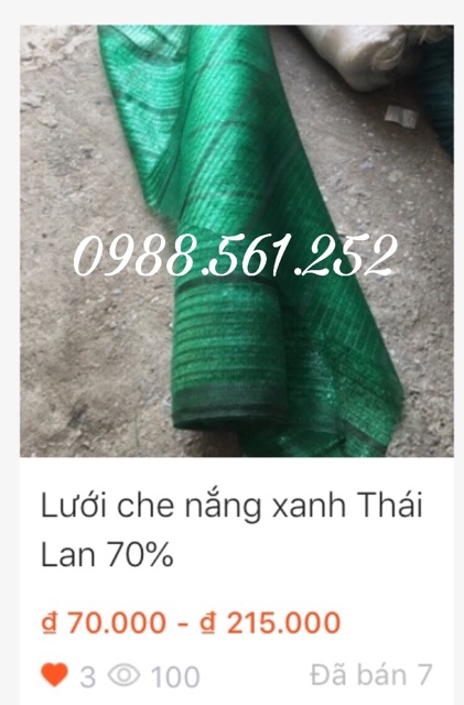 Nhà cửa & Đời sống > Trang trí nhà cửa > Khác || Lưới che nắng xanh Thái Lan 70%Còn hàng