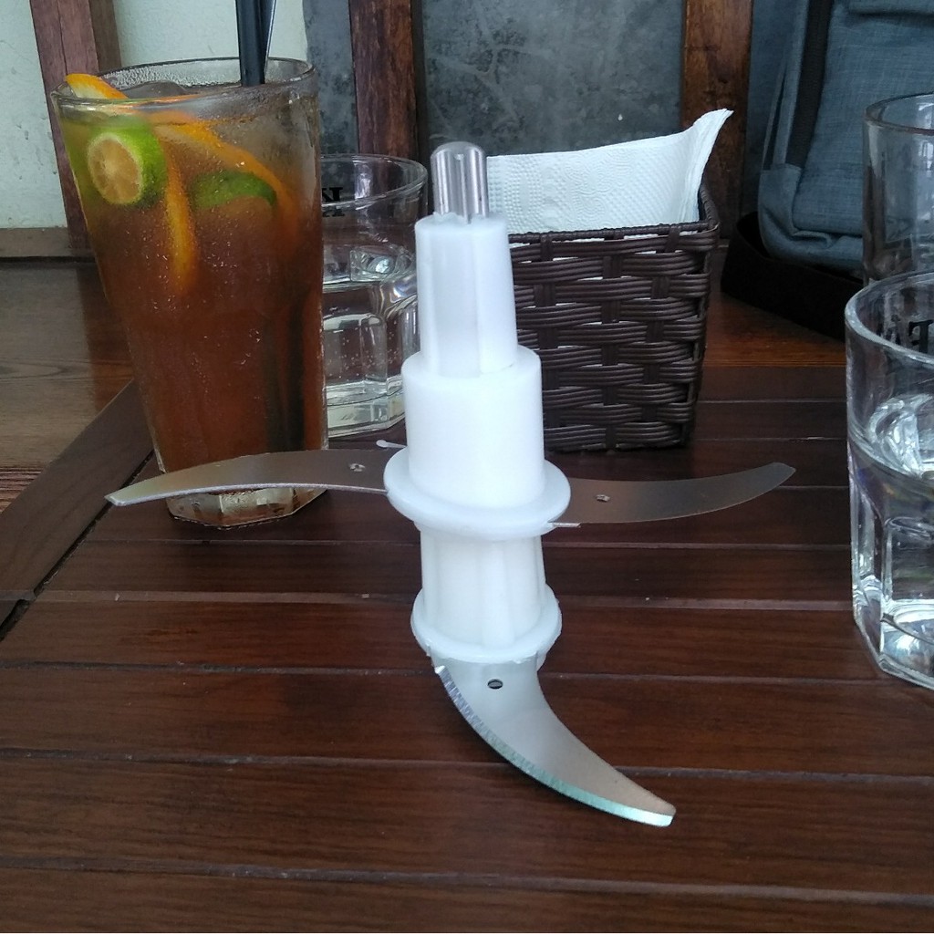 Lưỡi dao kép (4 lưỡi) thông minh và độc đáo kết hợp chất liệu thép không gỉ tạo nên lực cắt mạnh & độ sắc bén nhanh chóng xay thực phẩm nhuyễn chỉ trong thời gian ngắn.Hơn thế nữa, trục lưỡi dao là thép bọc nhựa khó bị tét như các trục lưỡi thuần nhựa.Ngoài ra, lưỡi dao thiết kế rời có thể tháo rời dễ dàng để vệ sinh chi tiết.