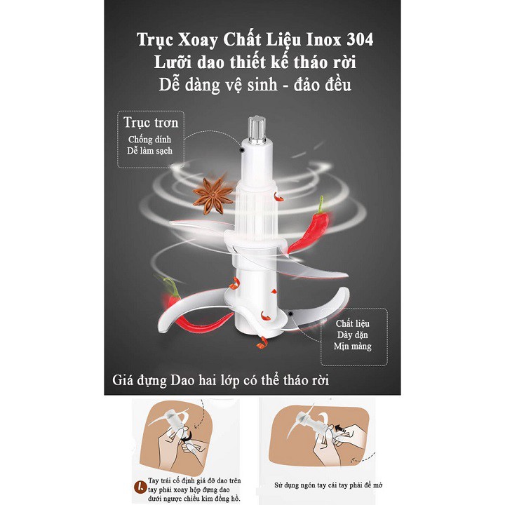 -Lưỡi 4 cánh giúp xay đều thực phẩm bên trong cối