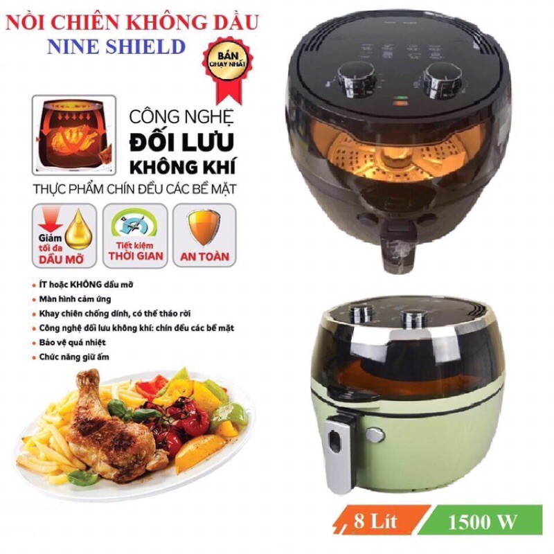 Nồi chiên không dầu NINE DHIELD 8L có công suât ƯU ĐIỂM NỒI CHIÊN- NỒI NƯỚNG KHÔNG======