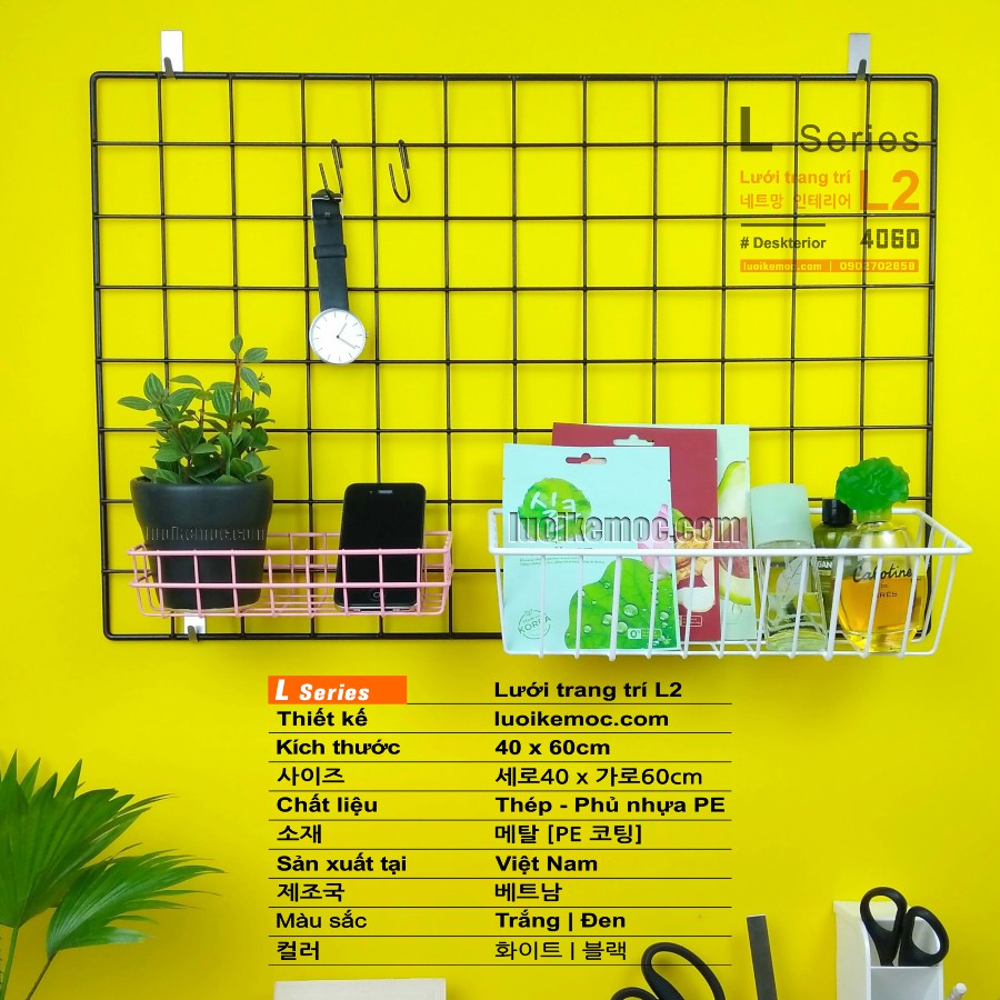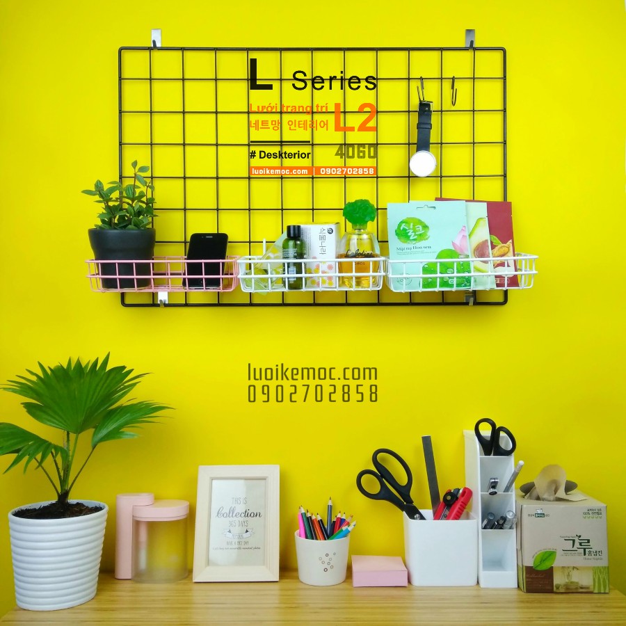 - Dùng kèm với các loại rổ treo lưới, móc treo lưới, là xu hướng trang trí mới thay thế các loại kệ gỗ