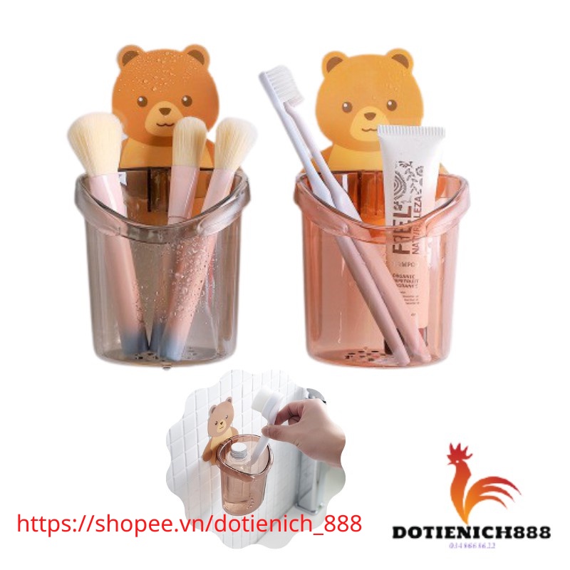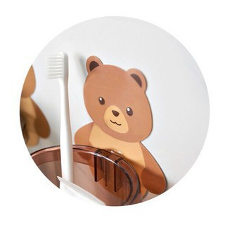 Ly cốc đựng bàn chải kem đánh răng dán tường hình chú gấu xinh xắn để nhà tắm siêu tiện lợi