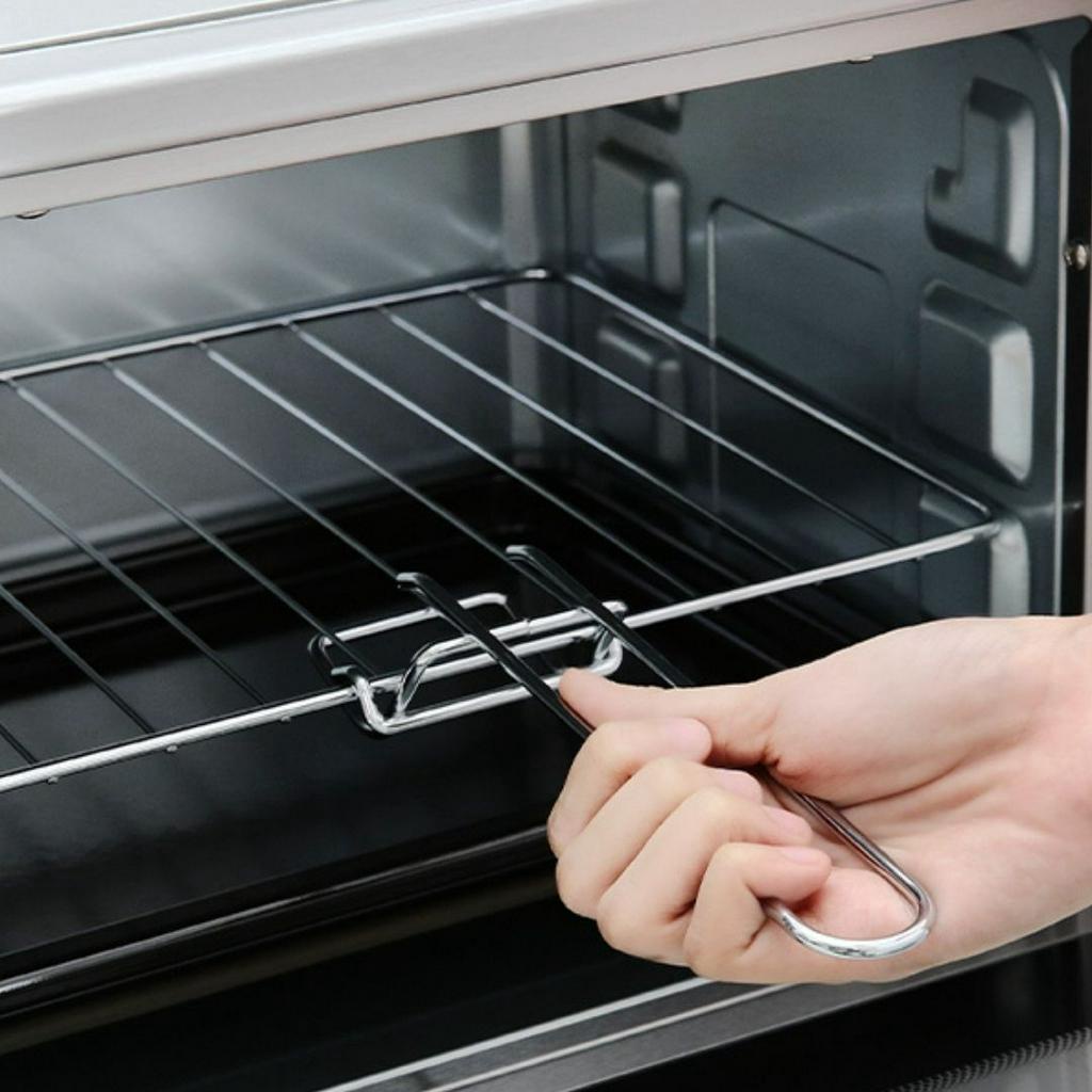 - Lò nướng điện Mishio MK254 có bộ phụ kiện tiện dụng: Khay nướng, vỉ nướng và cây gắp vỉ giúp dễ dàng lấy vỉ nướng hoặc khay nướng khi lấy đồ ăn ra khỏi lò. Hỗ trợ người dùng nấu nướng thuận lợi và nhanh chóng hơn.