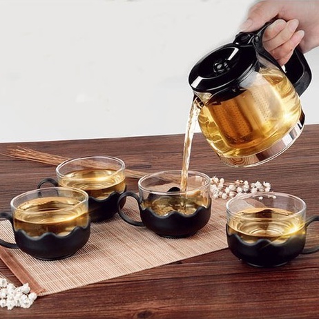 Nhà cửa & Đời sống > Dụng cụ nhà bếp > Dụng cụ pha trà, cà phê || Bộ ấm chén, bộ bình trà thuỷ tinh có túi lọc inox dung tích 500ml + kèm 4 ly thuỷ tinhCòn hàng
