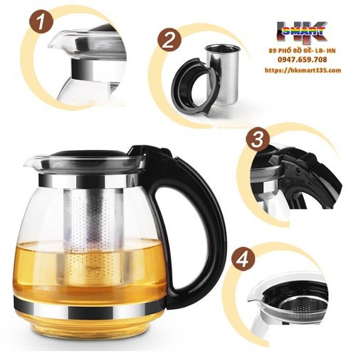 Giới thiệu Bộ ấm chén, bộ bình trà thuỷ tinh có túi lọc inox dung tích 500ml + kèm 4 ly thuỷ tinh