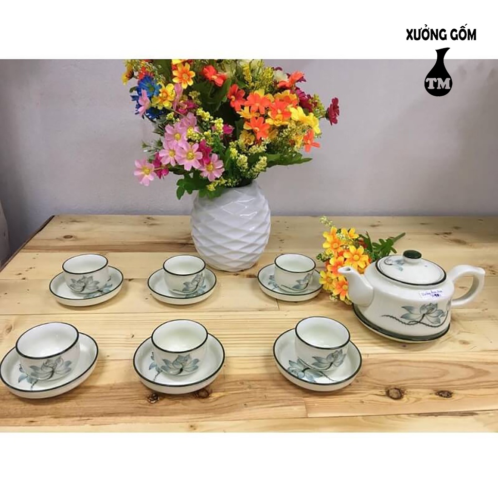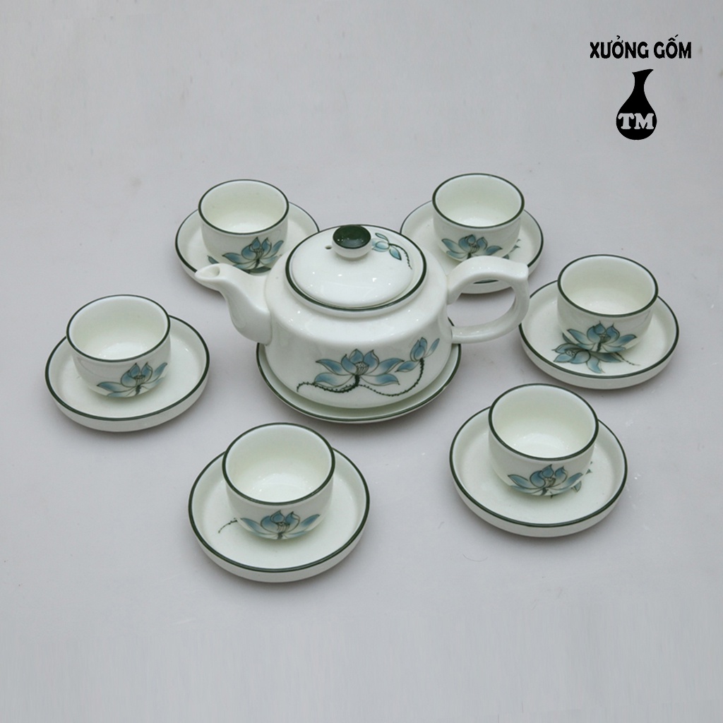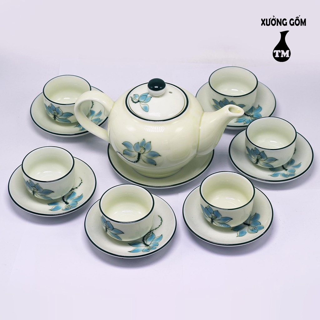 Nhà cửa & Đời sống > Dụng cụ nhà bếp > Dụng cụ pha trà, cà phê || Bộ Ấm Chén Pha Uống Trà Men Kem Họa Tiết Vẽ Hoa Đào Xanh Xưởng Gốm TM Bát Tràng( bộ bình trà, uống trà)Còn hàng