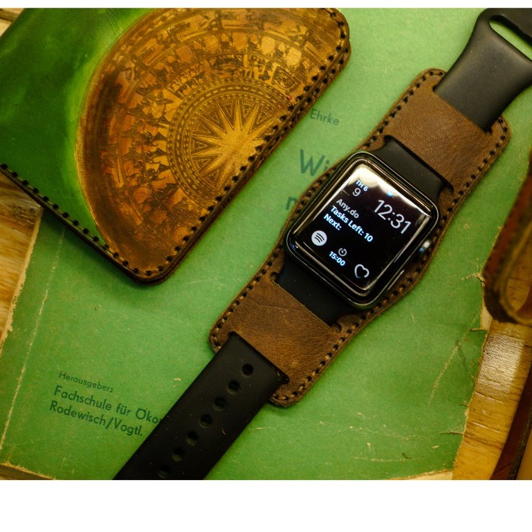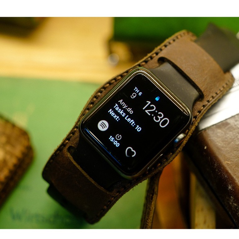 Giới thiệu Tấm đệm dây Apple Watch , iWatch , iphone Watch chống mồ hôi da bò nâu đất kiểu quân đội RAM Leather B2