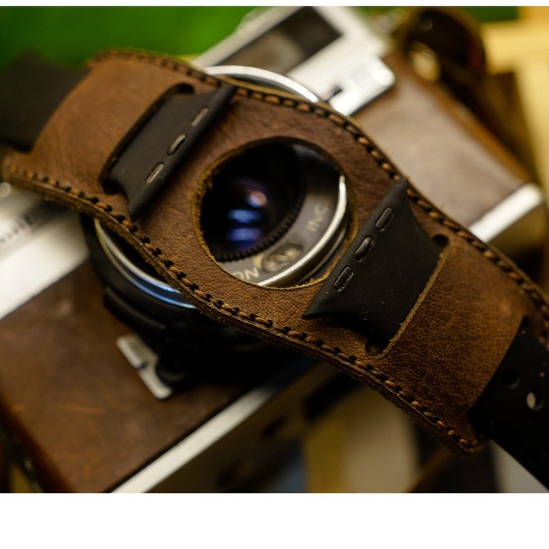 Tấm đệm dây Apple Watch , iWatch , iphone Watch chống mồ hôi da bò nâu đất kiểu quân đội RAM Leather B2