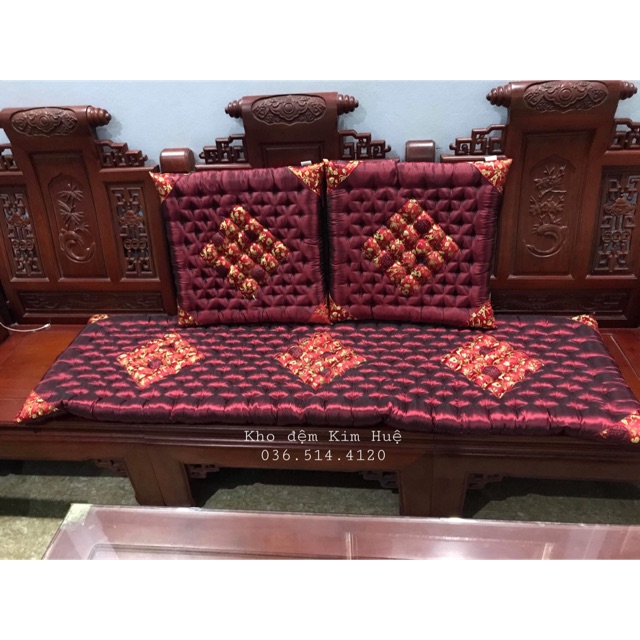 Nhà cửa & Đời sống > Nội thất > Đệm ngồi || Bộ đệm thảm trải ghế gấm lụa đẹp 3 món trần bông thêu lụa (2 vuông 1 dài)Còn hàng