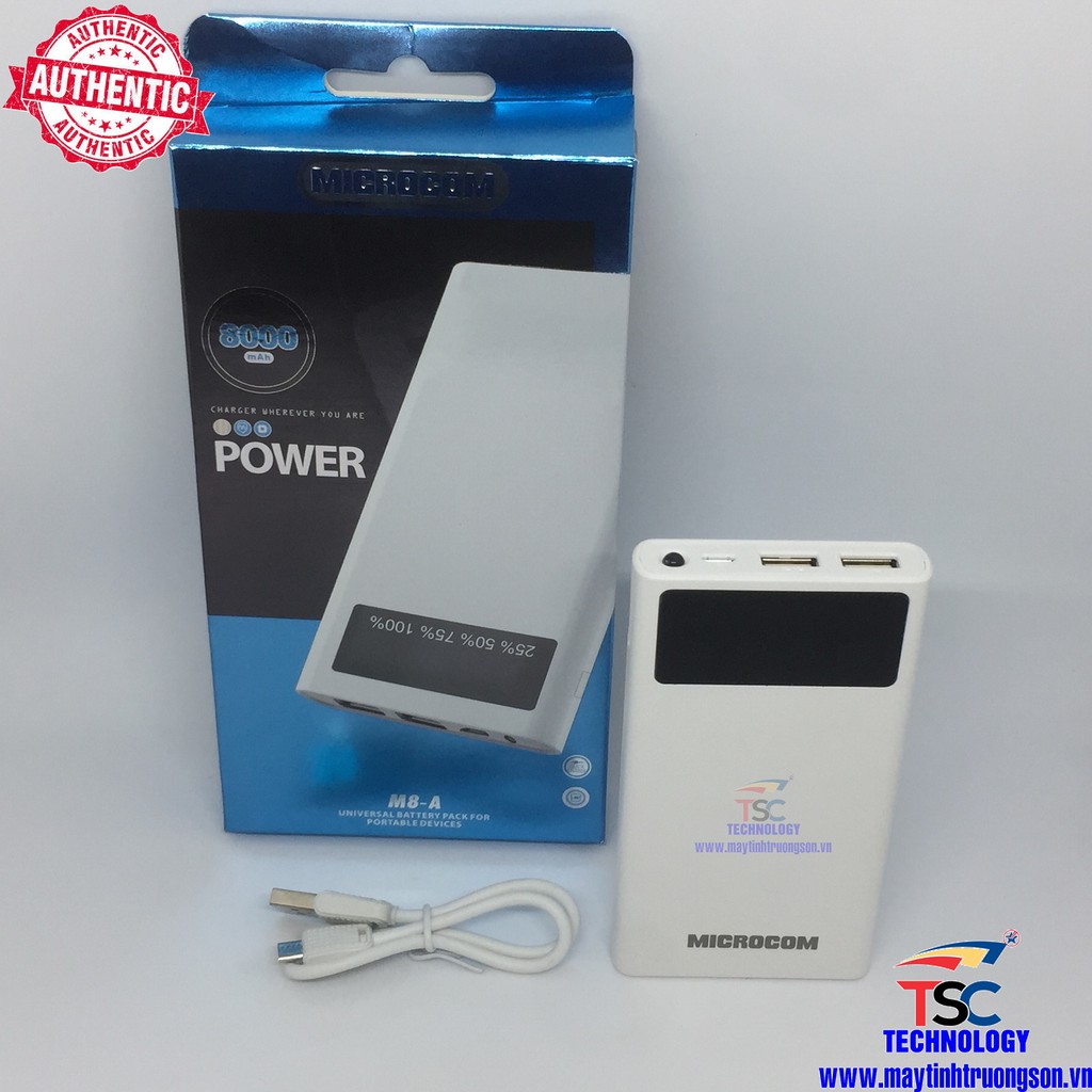 Giới thiệu M8-A Pin Sạc Dự Phòng Microcom M8-A 8000mAh Có LCD Led Hiển Thị % Pin Chính Hãng - Maytinhtruongson.vn